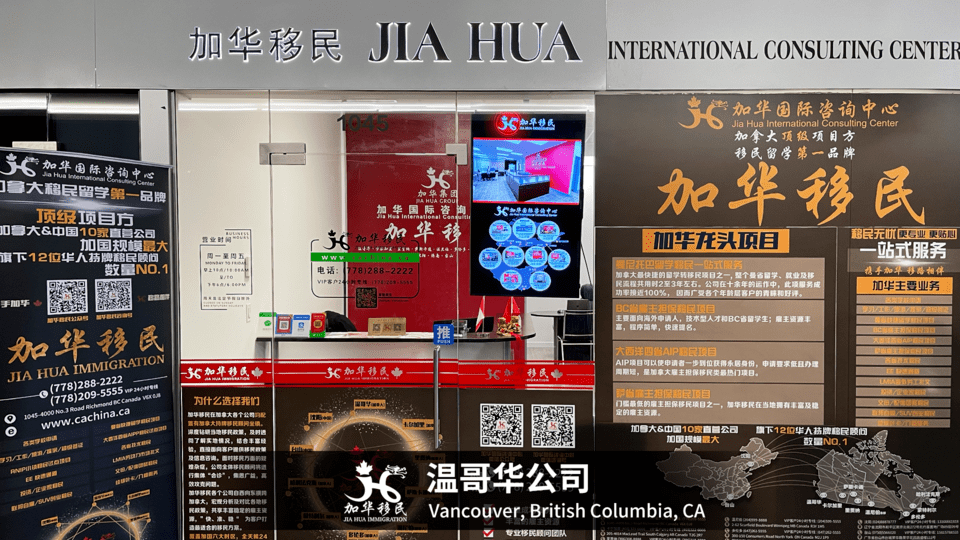 Jia Hua Vancouver Branch was established in British Columbia in November, 2014. It is federal incorporation registered and certified by the Government of Canada providing a series of one-stop services including application of Visas, International Education Programs, Immigration, and Business Investment, and Canadian Permanent Residence Applications.